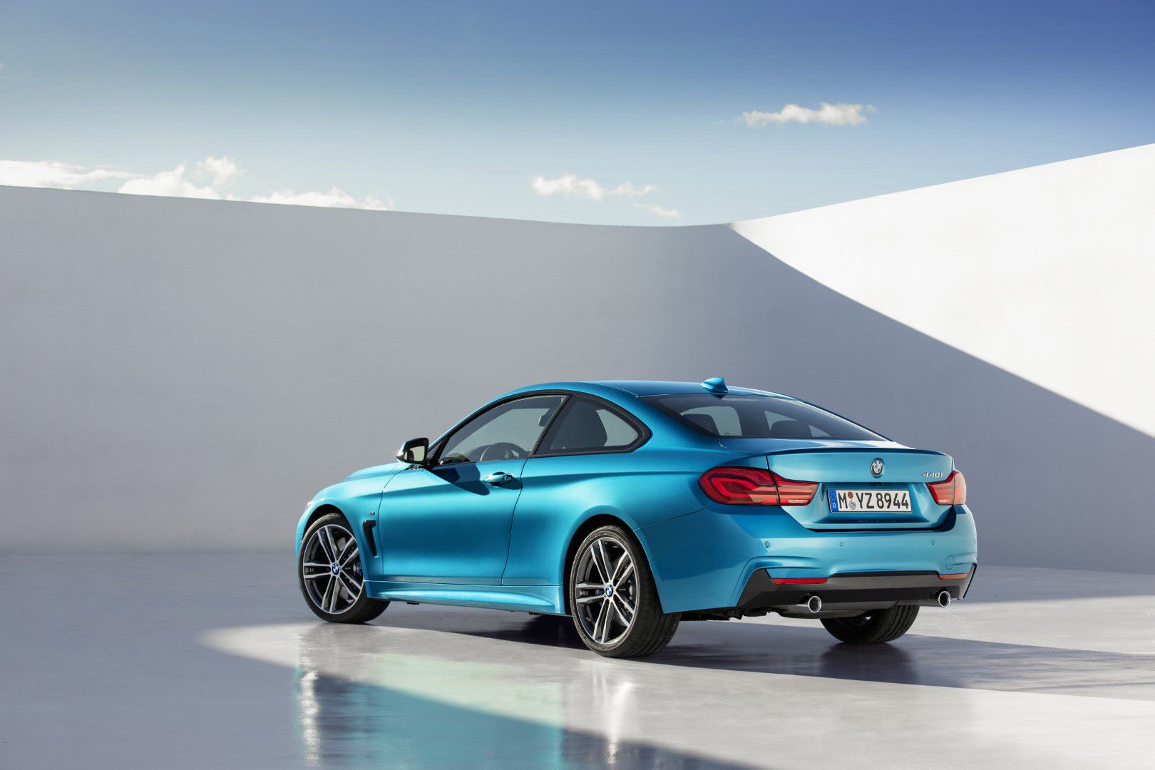 Sebevědomý charakter zadní části BMW řady 4 Coupé podtrhuje výrazný nárazník s integrovanými koncovkami výfuků. Přepracovaná dvoudílná zadní LED světla atraktivně zdůrazňují šířku karoserie a dynamické a zároveň funkční tvary.
