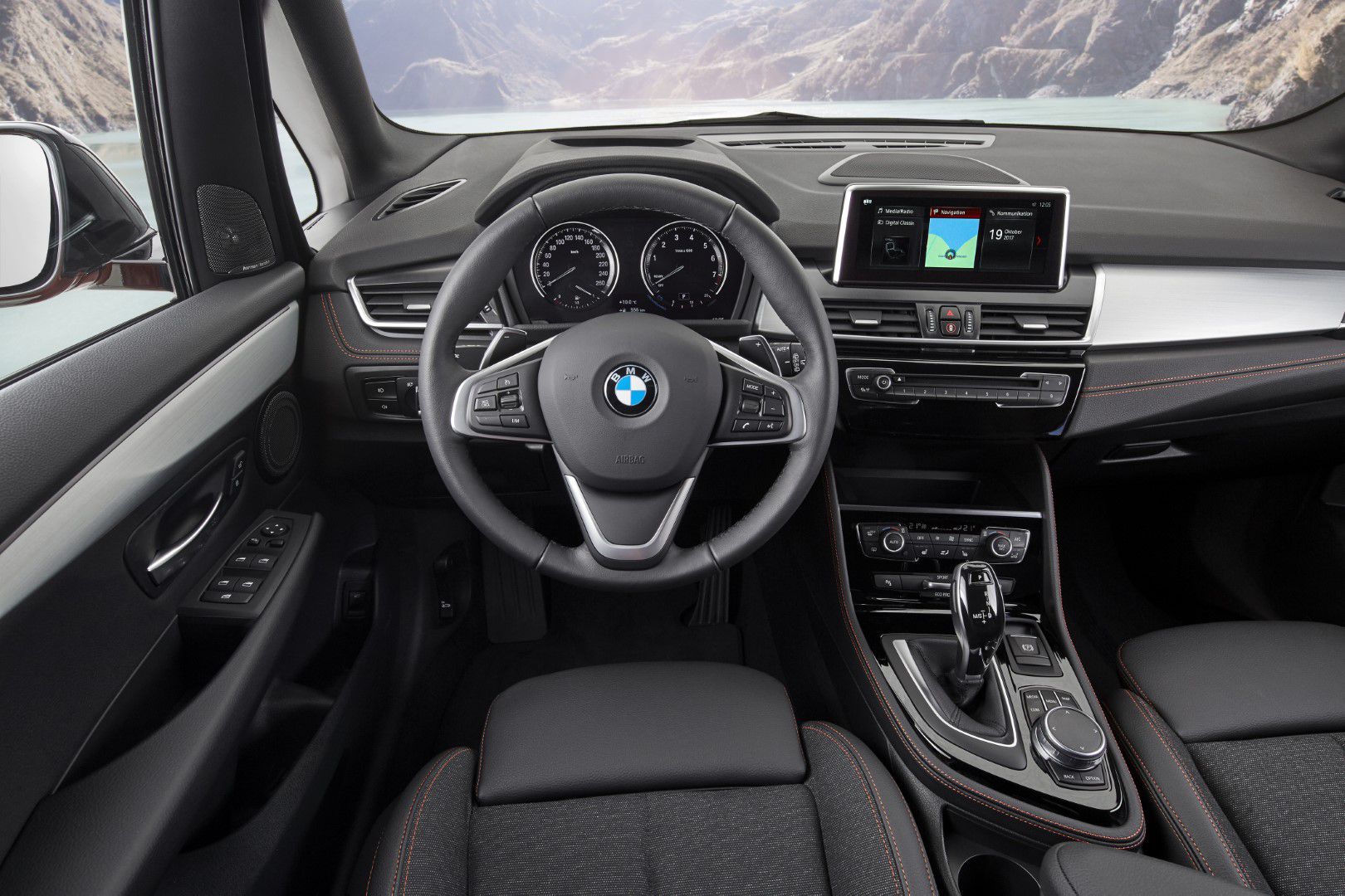 Interiér je světlý a překvapivě prostorný. Navzdory velmi kompaktním vnějším rozměrům, definovaným délkou 4342 mm, šířkou 1800 mm a výškou 1555 mm, poskytuje objemný interiér pohodlná sedadla pro pět osob. Díky velké prosklené ploše je rovněž světlý a vzdušný. Tento efekt je dále umocněn na přání dodávaným panoramatickým střešním oknem a trojúhelníkovým oknem u střešního sloupku A. Oba tyto prvky výbavy vylepšují výhled všemi směry. Horizontálně strukturovaný design přístrojové desky a výplní dveří, rozdělený do jednotlivých vrstev, dodává interiéru elegantní atmosféru lehkosti a zdůrazňuje pocit prostoru. Pro BMW typické zaměření přístrojové desky na řidiče podtrhuje sportovní charakter nového BMW řady 2 Active Tourer.