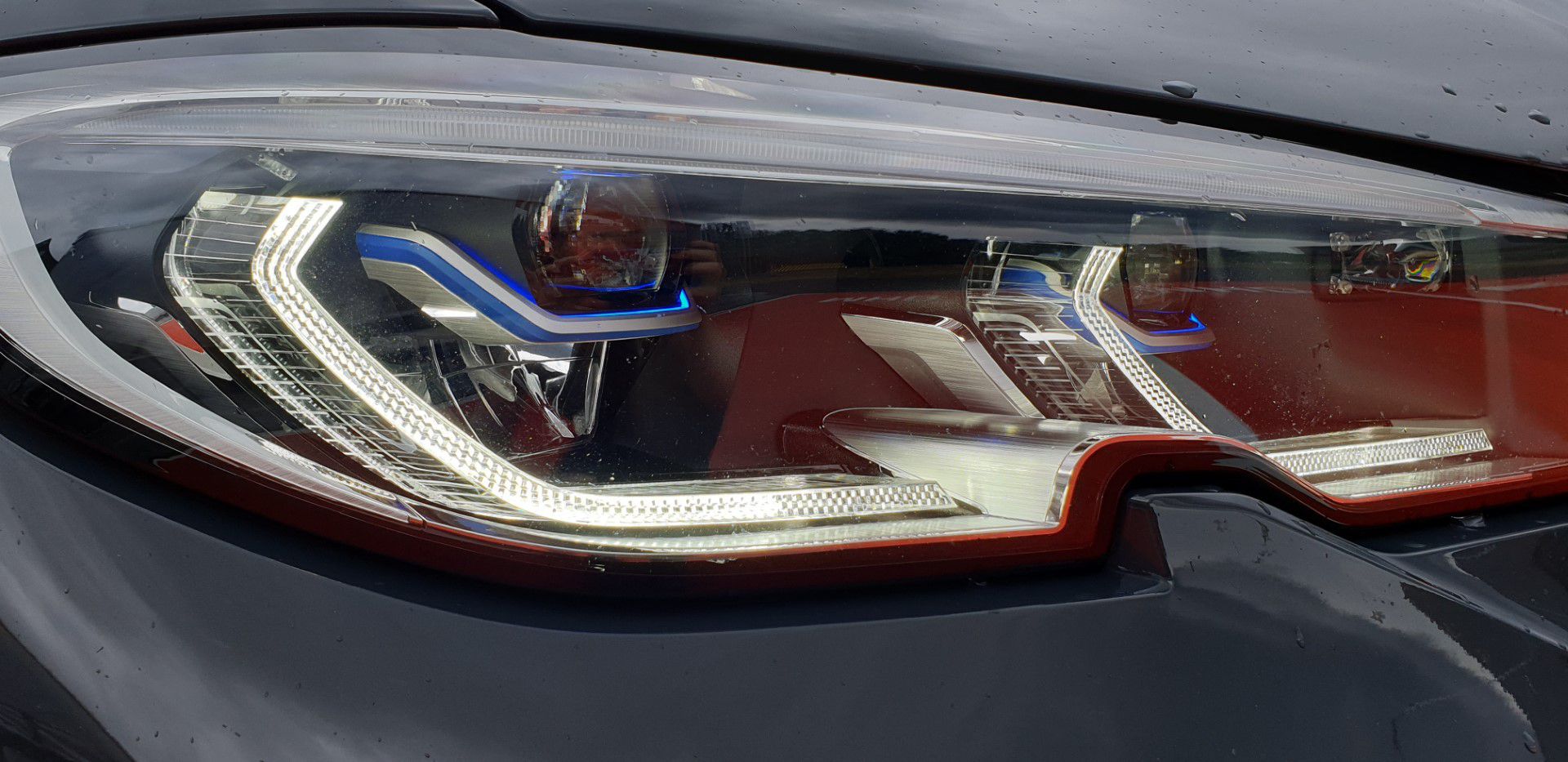 Dynamická silueta a nízký ponton karoserie ukazují na atleta, dlouhý rozvor taktéž. Vykrojení (zoubek karoserie) v předních světlometech odkazuje na trojku s označením E46. LED světla jsou mimochodem standardem, xenonové výbojky jsou navždy zapomenuty. LEDky řežou tmu tak suverénně, že noční jízdy budete milovat. Můžete si pořídit i Laserová světla. A to je pak panečku paráda. Modré segmenty laserových světel vypadají úchvatně i ve dne. Tohle chci!