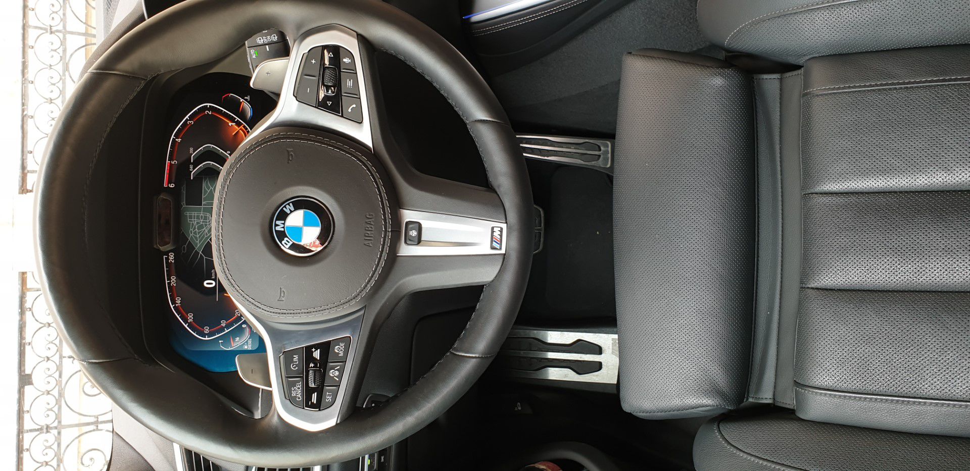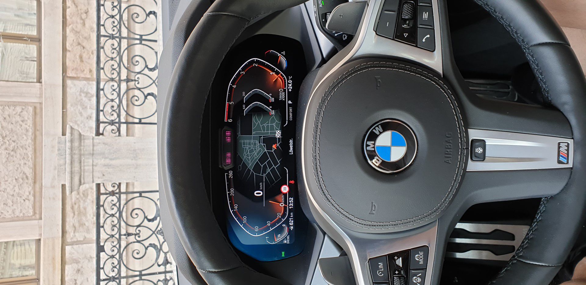Vůz s notoricky známým řadovým šestiválcem, spalujícím naftu, který by se suverénní dynamikou utáhl i kamion na sobě nese plaketku s označením M Sportovního paketu. Bílá pastelová barva Alpin weiss vůz opticky ještě zvětšuje (jakoby sám o sobě nebyl velký až až), auto má krásná, velká kola a samozřejmě LED světlomety, jejichž zamračený výraz při denním svícení nenuceně a zcela samozřejmě čistí levý pruh dálnic. A to i od notorických levopruhařů. Head-Up displej rozmazluje svou dokonalostí a skvěle hrající hifi systém už jen dotváří pohodu na palubě.